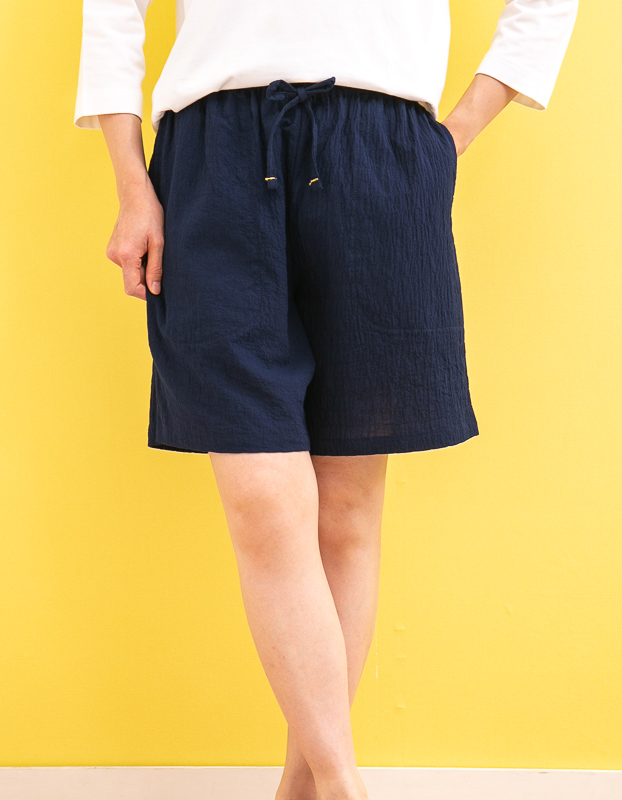 綿100% ルームパンツ ショート レディース サラッとして軽くて涼しい素材です。ウエストゴム仕様 M/L/LL/3L/4L [25014]