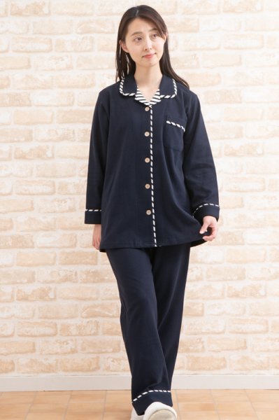 パジャマ レディース 長袖 前開き 春秋 肌に優しい綿100%やや厚めのニット地でシンプル ナイトウェア ルームウェア 部屋着【Sサイズ】【LLサイズ】入院準備 [35040]